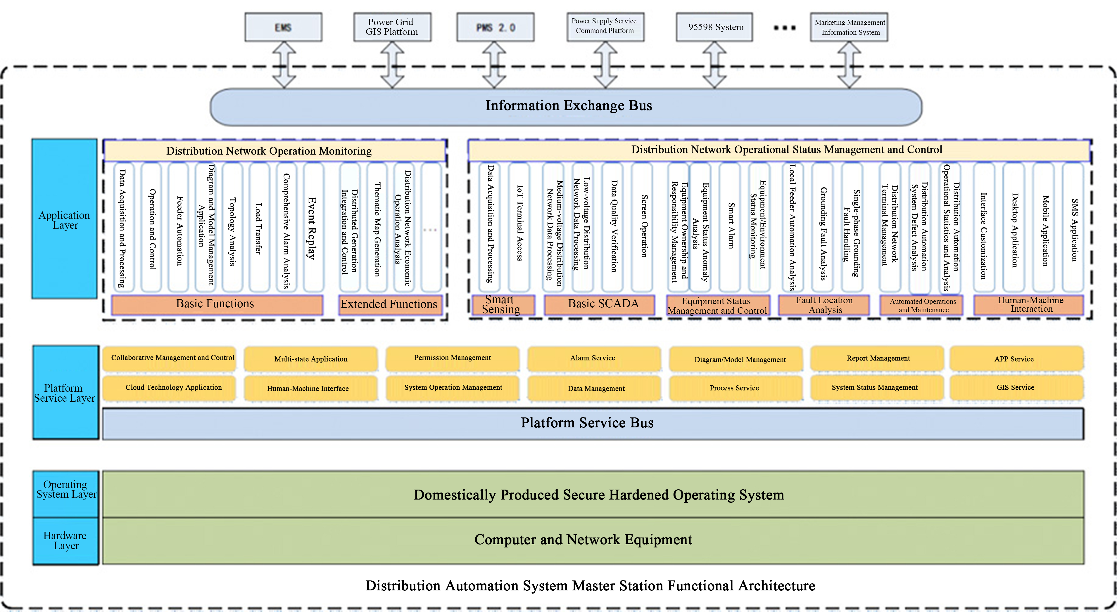 The new-generation distribution automation system master station (DF8003D) focuses on large-scale operation and maintenance as its primary application. It complies with the State Grid's latest distribution master station system architecture standards and adopts a fully integrated prefecture-county deployment approach. Designed in accordance with IEC 61968/61970 standards, the system enables data sharing with multiple systems such as EMS and PMS2.0 through an information exchange bus. It supports external exchange of graphical model data, real-time data, and historical data, facilitating vertical and horizontal data integration across all levels and layered applications. This creates a closed-loop management process for distribution network operation monitoring and dispatching operations, supporting lean management in areas such as distribution network dispatching operation, production O&M management, condition-based maintenance, defect and hidden risk analysis, and providing data support for distribution network planning and construction.